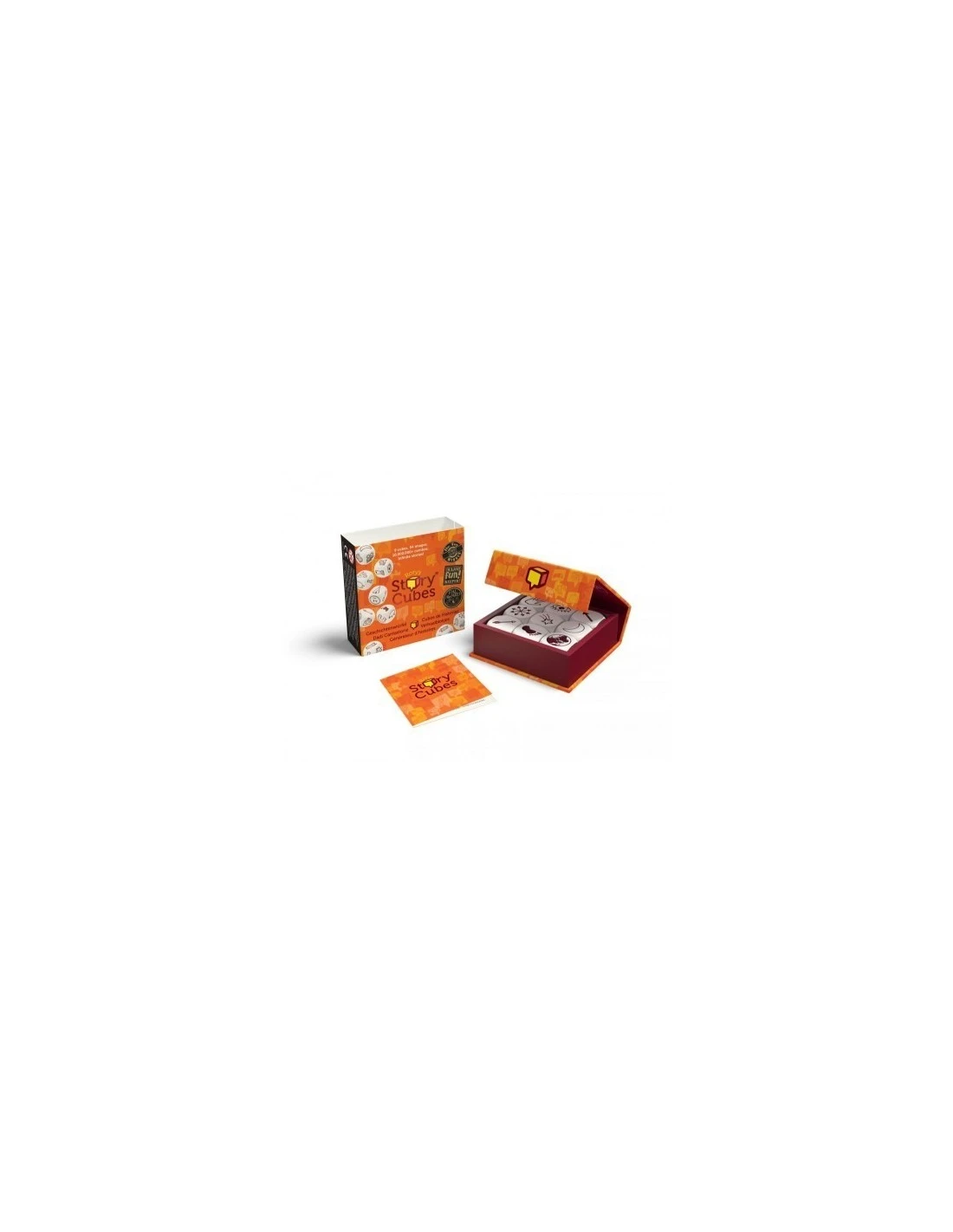Originally Rory had put the images on the faces of a Rubik’s Cube, and players would turn the Cube to scramble the images, then choose one side to play with. Kate Jones of Kadon Enterprises suggested putting the 54 images on 9 separate cubes, to allow for quicker ways to generate more varied combinations, including conceptual puzzles. Rory readily agreed, having considered the 9-cubes idea himself earlier. At a creativity conference held at Kadon headquarters in May 2004, a prototype was whipped up, and in 2005 Kadon launched the cubes version of Rory’s Story Cubes.
