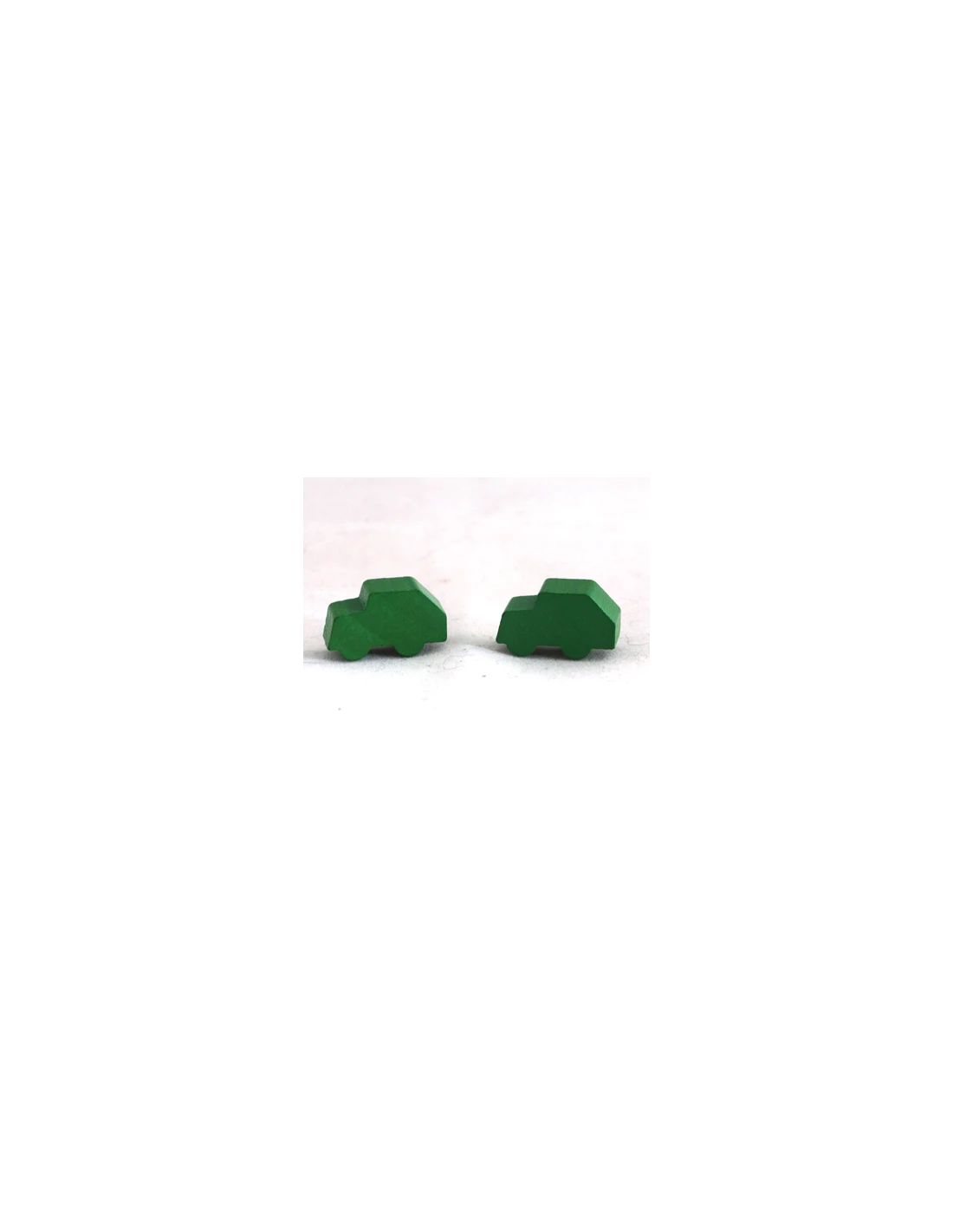 Houten auto van ca. 10mm lang en 8mm breed. In verschillende kleuren beschikbaar.