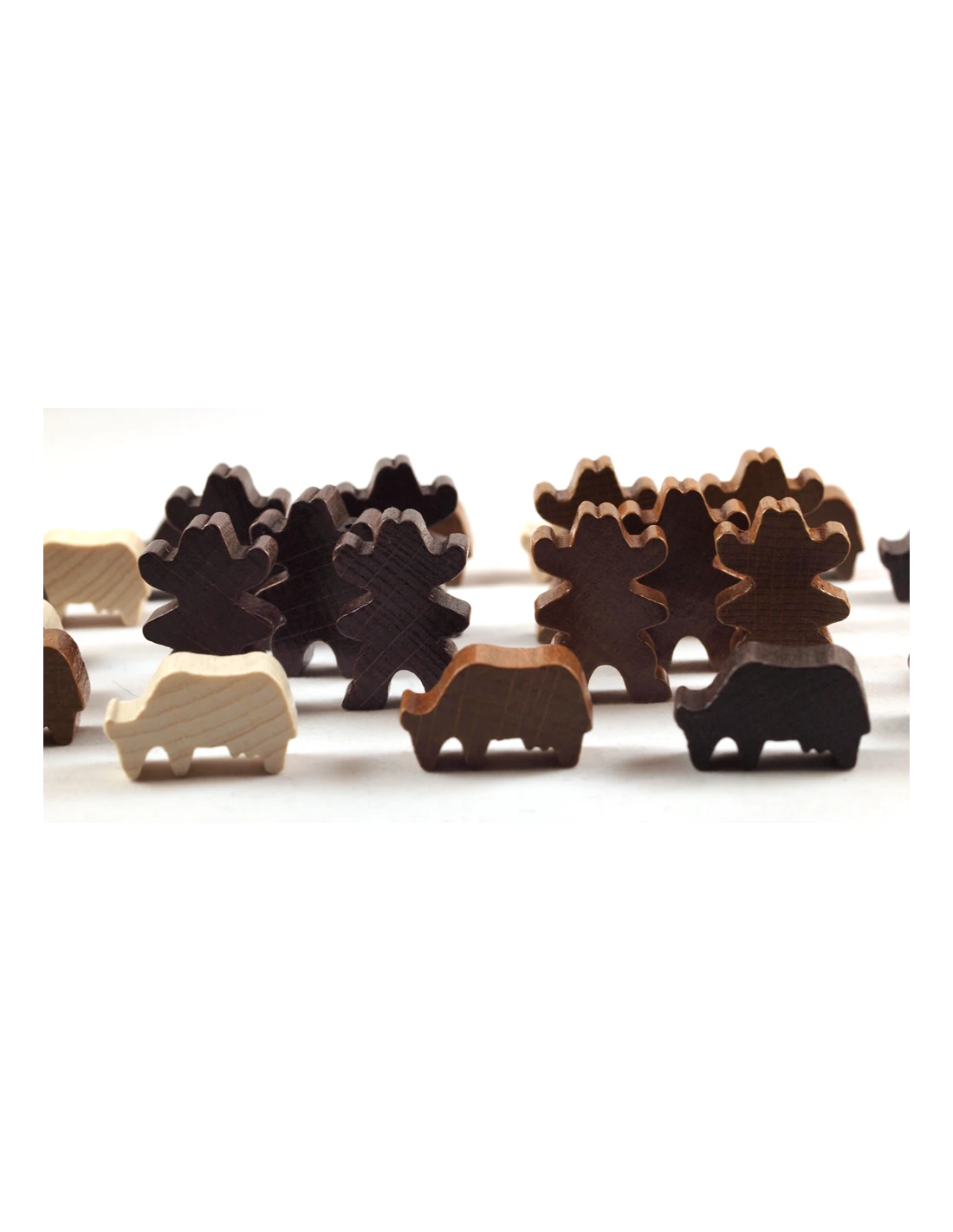 Set van 3x 4 cowboys en 9 koeien, in de kleuren wit, lichtbruin en donkerbruin. Met twee dobbelstenen.