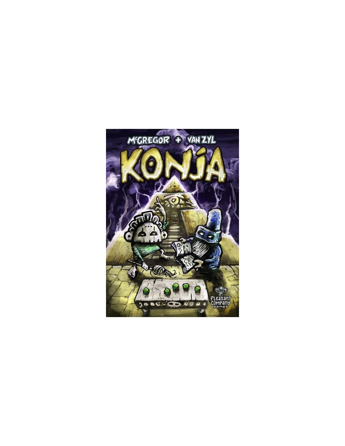 Konja is a press-your-luck and resource management dice game in which 2 players compete as wizards, summoned by an old king to manifest a great storm and bring rain to a dry land. By rolling dice and activating powerful spells and relics cards, players gain Gold, Magick, Power, and Clouds.