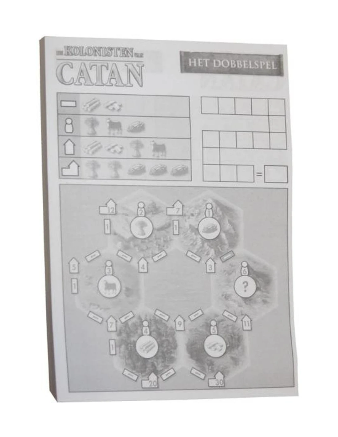 Schrijfblok voor het Kolonisten van Catan Dobbelspel.