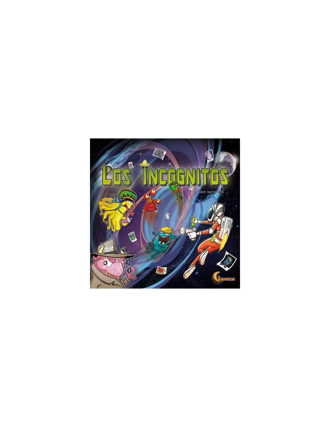 Los Incognitos: Alien iacta est is a dice game in which the players try to track down as many extraterrestrial time travelers as possible. The players roll their dice as long as it is possible to carry out at least one of four possible actions. Except from storing a maximum of two dice, the players can walk or fly through different eras of human history in search of alien visitors. They receive points for monsters they have marked and also for sites they have explored. After a certain number of rounds, the most successful monster tracker as determined by the number of points wins.
