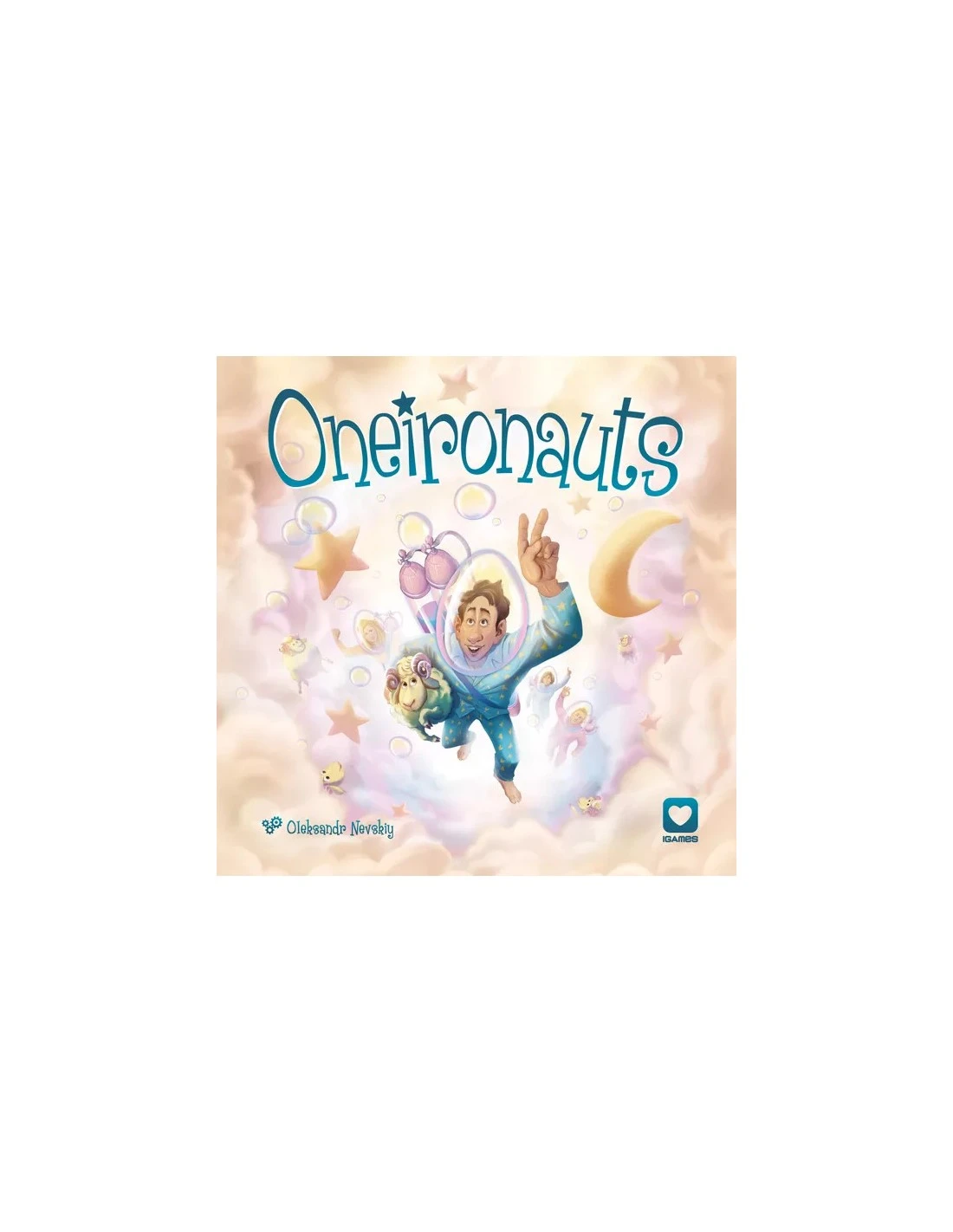 In Oneironauts, all players play as one team. The game lasts a certain number of rounds. At the start of each round, take the top word card and place it face up. Each player chooses from their dream cards the one that matches the word on the card the best, then these cards are shuffled together with a random card before they’re all revealed. Finally, all players simultaneously try to guess the card that was accidentally added. For each correct answer, the team scores 1 sheep. Players win if they collect 15 or more sheep before they run out of elixir; otherwise they lose.