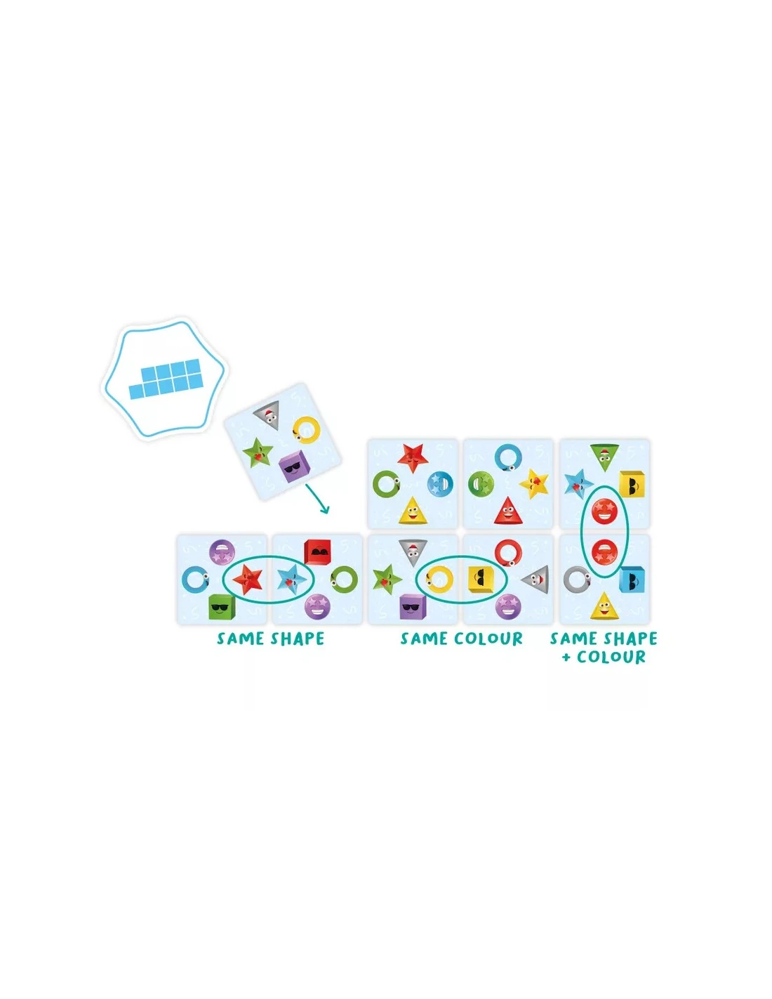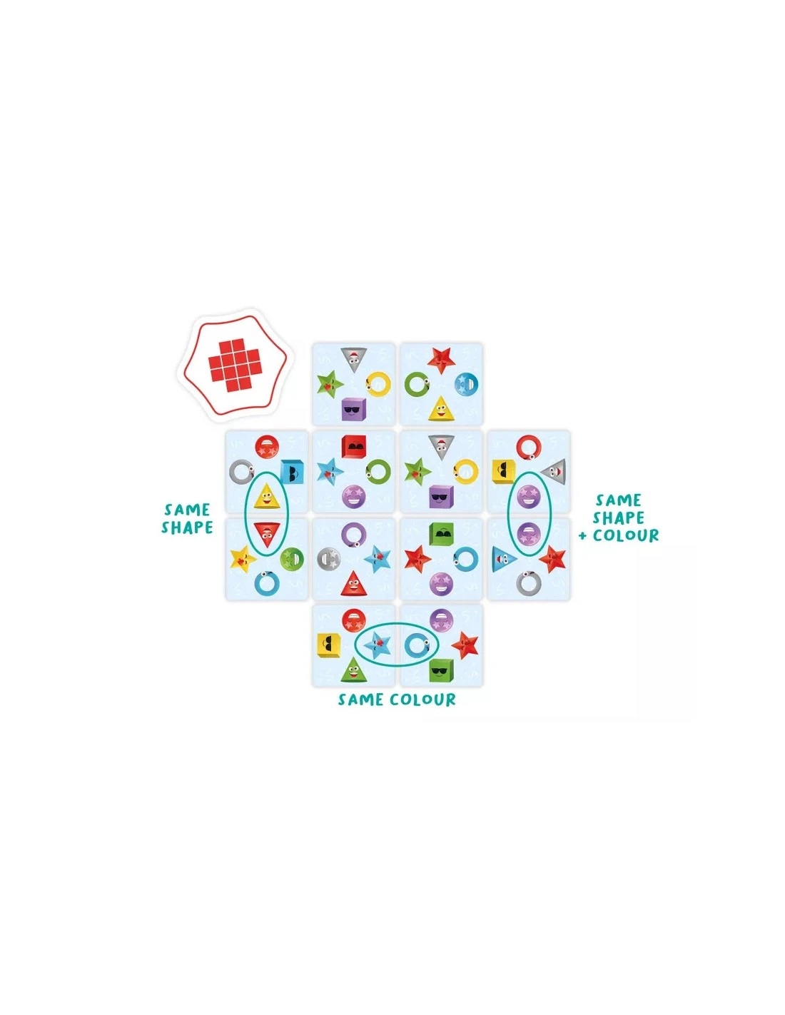 Try to match the playing cards to the exposed pattern on the pattern card.