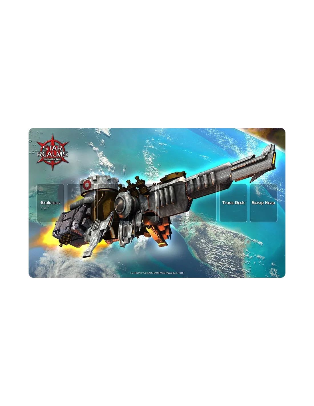 This large neoprene playmat supports up to six players and includes spaces for the Trade Deck, Trade Row, Explorers, and Scrap Heap. It measures 24” x 14” (61cm x 35.5cm).