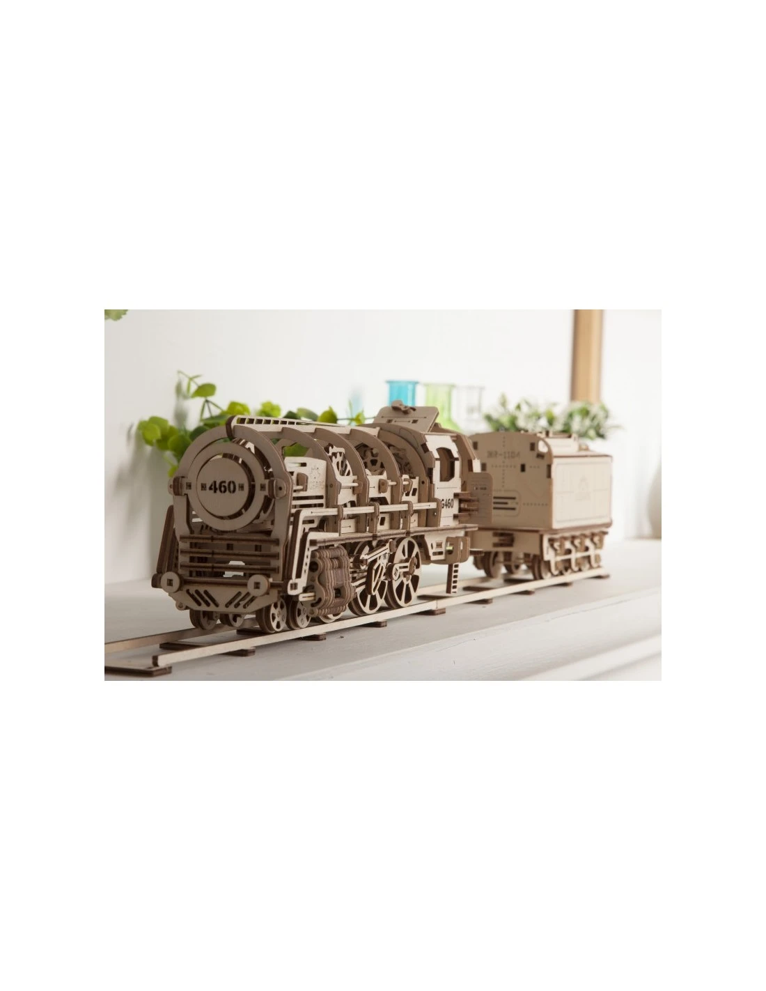 UGears heeft echt z’n best gedaan om het hoofdmechanisme van de locomotief met tender zo realistisch mogelijk te maken. De zijkanten zijn opengewerkt waardoor de werking van de dieselmotor zichtbaar is. De deuren en het dak zijn scharnierbaar met zicht op de cockpit van de trein, compleet met een instrumentenpaneel en een vouwladder onder de deur. Vijf meter spoorrails zorgen ervoor dat de trein ook echt rijdt.
