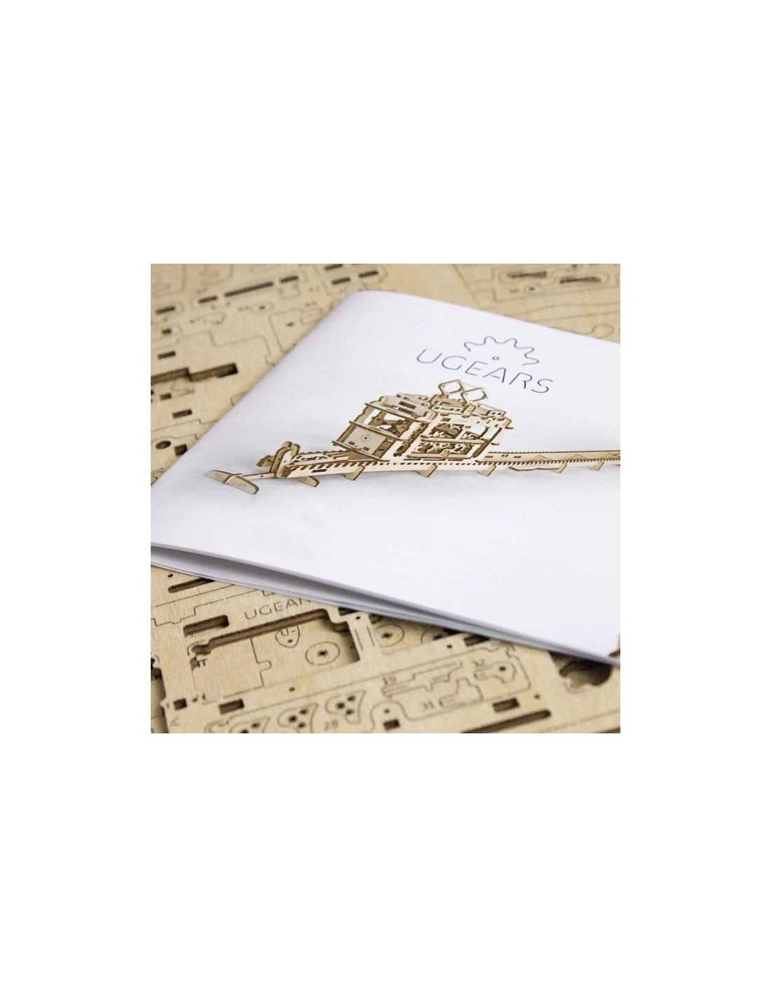Je moet de onderdelen uit de houten platen drukken en met behulp van duidelijke instructieplaatjes kan je het model in elkaar zetten. Hierbij hoef je geen lijm of ander speciaal gereedschap te gebruiken. Wel is het mogelijk om sommige delen met kaarsvet in te smeren. Indien gewenst, kan je de tram weer uit elkaar halen en opnieuw genieten van het bouwproces. De al in elkaar gezette tram, rijdt wanneer je aan het drijfwiel draait of dit opwindt.
